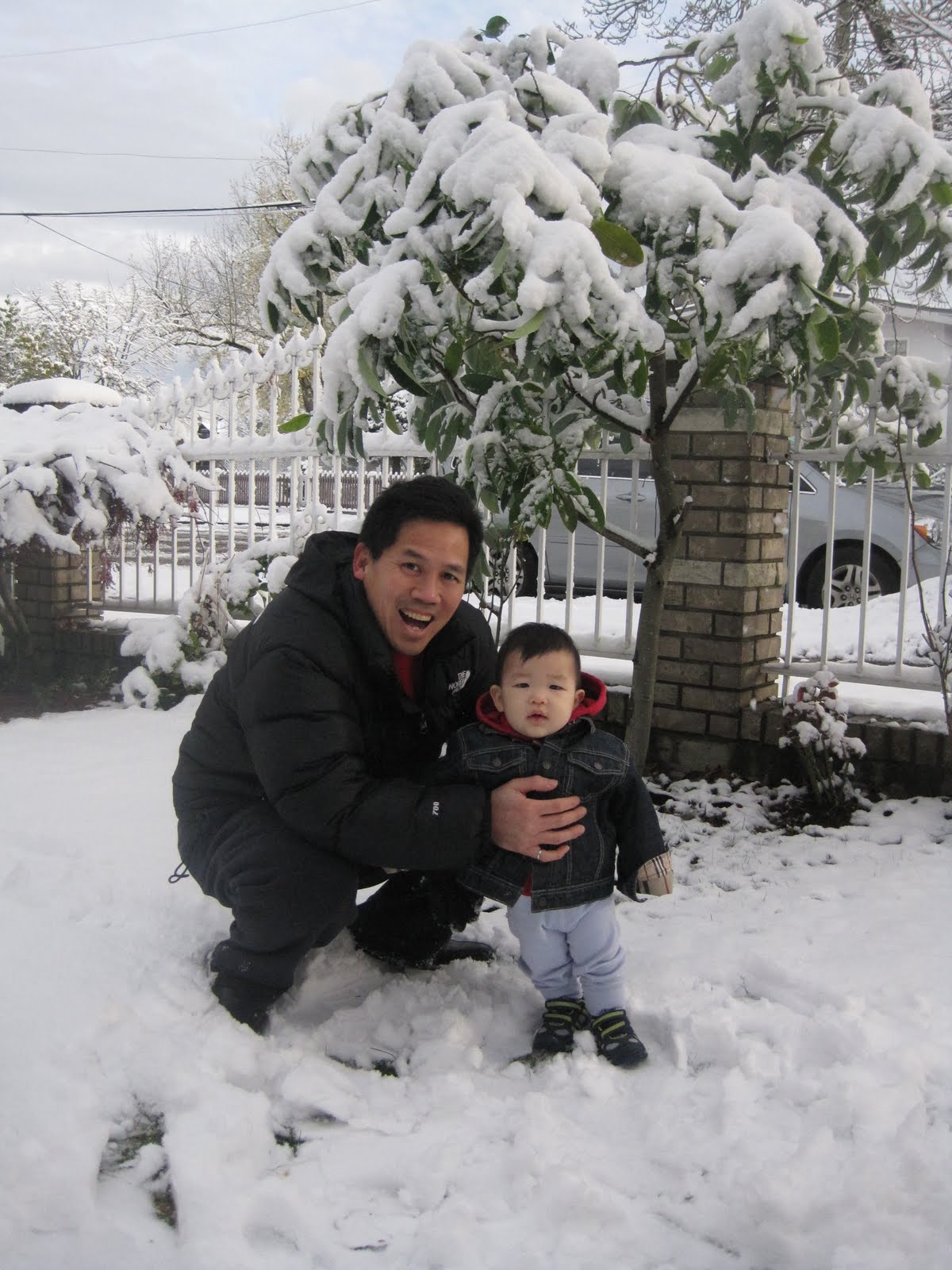 Vancouver's first snow fall of 2010 happened overnight on November 20th. Gabriel woke up to plenty of snow. We were outside playing in the snow!